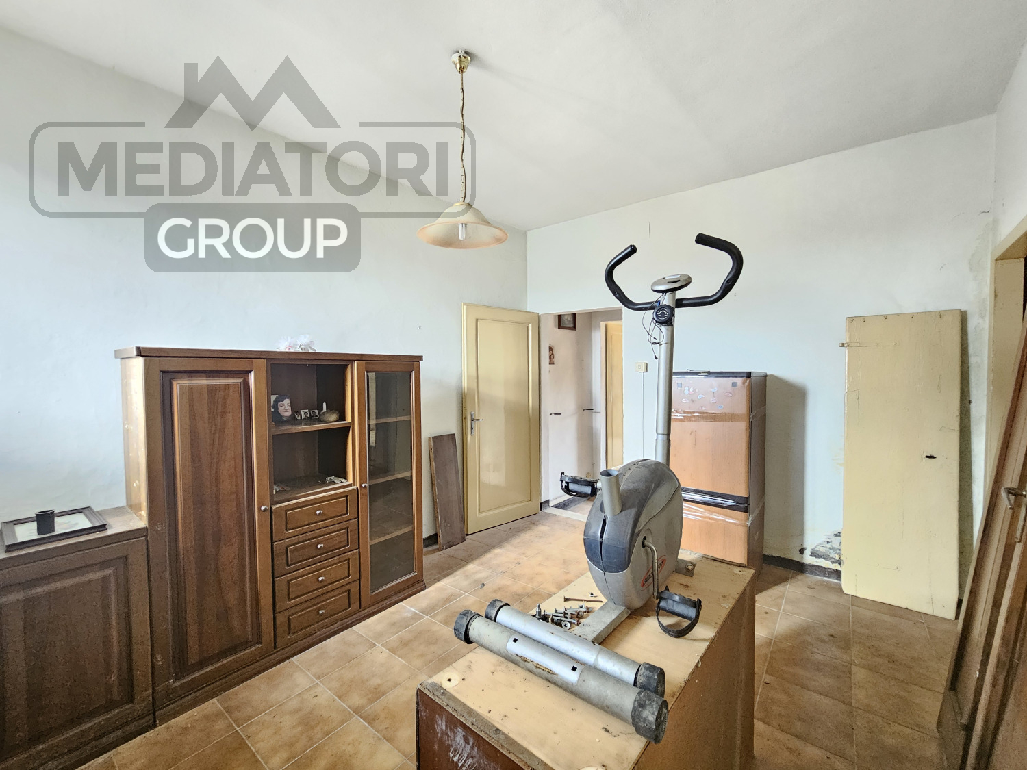 Proseguendo abbiamo un vano attualmente adibito a bagno finestrato con ripostiglio, collegato alla rimessa.
