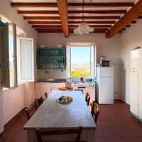 L’immobile, libero su tre lati e con una splendida vista aperta sulla piana lucchese, si distingue per luminosità e spazi generosi: circa 100 mq calpestabili ben distribuiti, con ingresso indipendente al piano terra. Internamente si compone di disimpegno d’ingresso, cucina rustica, ampio salone, bagno e tre camere da letto, di cui una attualmente adibita a salottino.