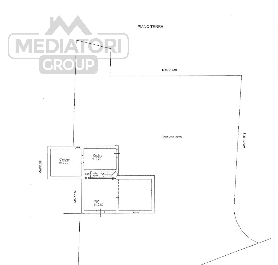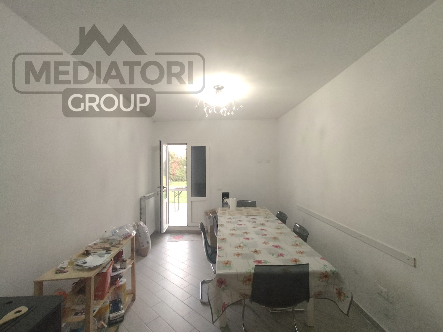 Al piano terreno è presente un Soggiorno doppio dal quale tramite la scala interna si può accedere ai vani del primo piano, ampio Tinello che ci conduce all'ingresso laterale e Cucina abitabile.