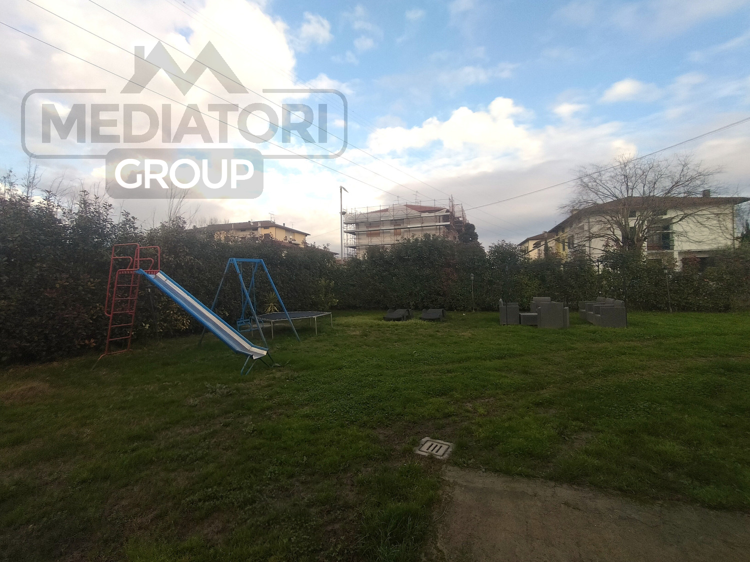 Completa la proprietà un giardino esclusivo di circa 650 mq totalmente recintato con adiacente ampia resede frontale esclusiva adibita a parcheggio delle autovetture.
