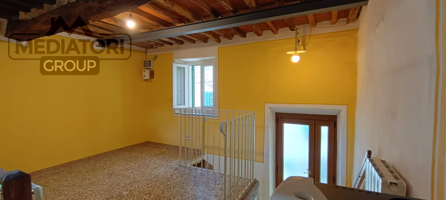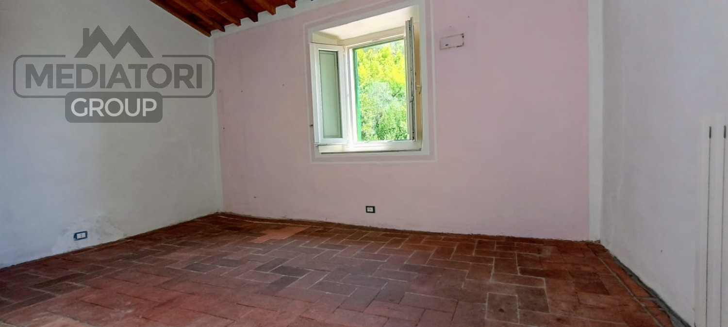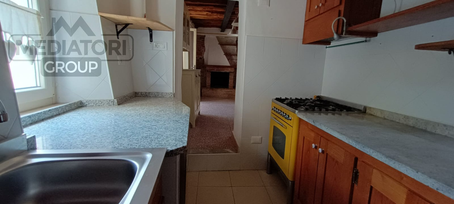 L'abitazione è composta al piano primo da soggiorno, sala da pranzo con camino a legna, angolo cottura e bagno finestrato con doccia, completamente rifatto. Tramite comode scale in cotto si raggiunge la zona notte composta da due camere, una dotata di cabina armadio.