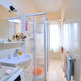 Il bagno è finestrato e corredato di doccia.