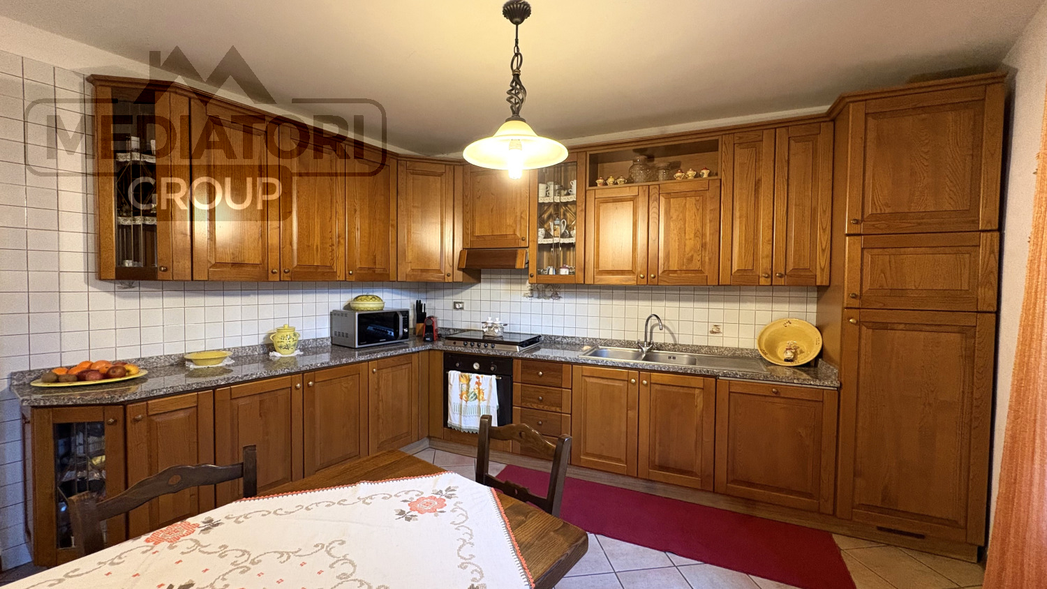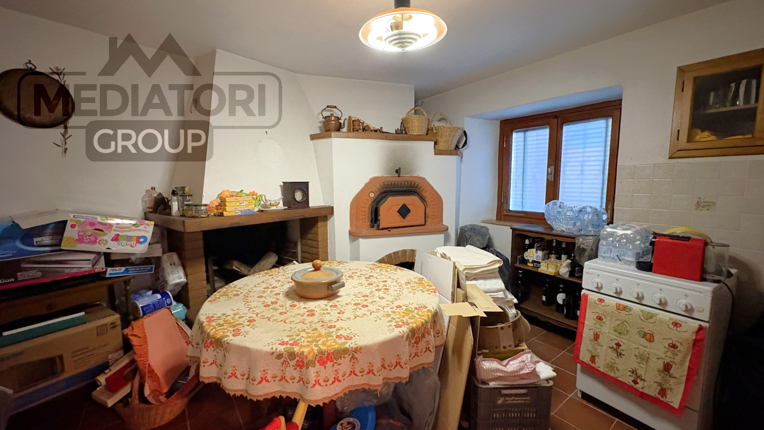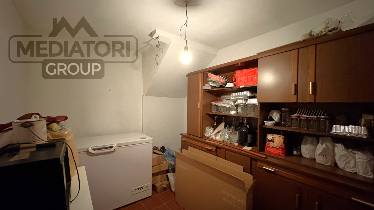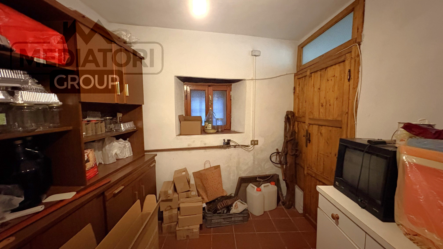 Il piano terra è composto da ingresso, garage di circa 40 mq (accessibile anche dall’esterno), bagno finestrato con vasca, cucina con camino e forno a legna e comodo ripostiglio.