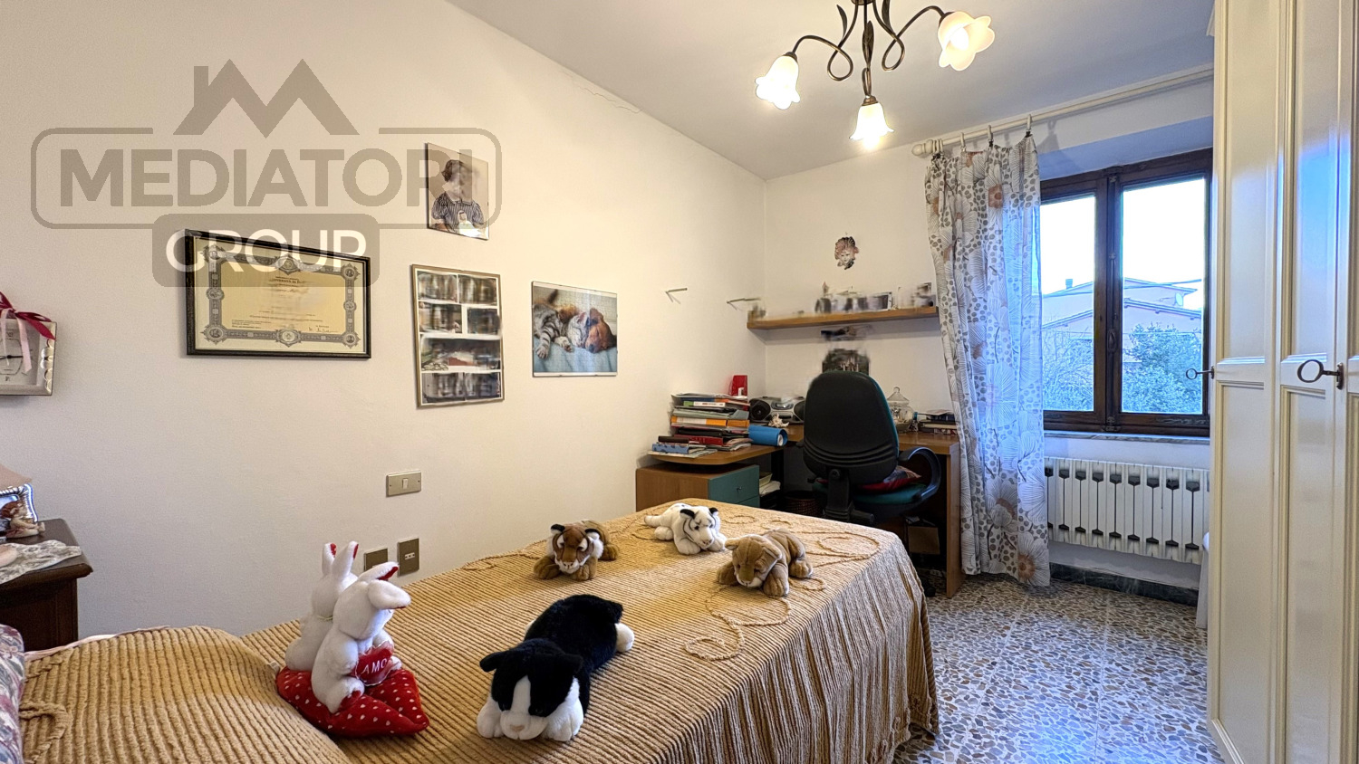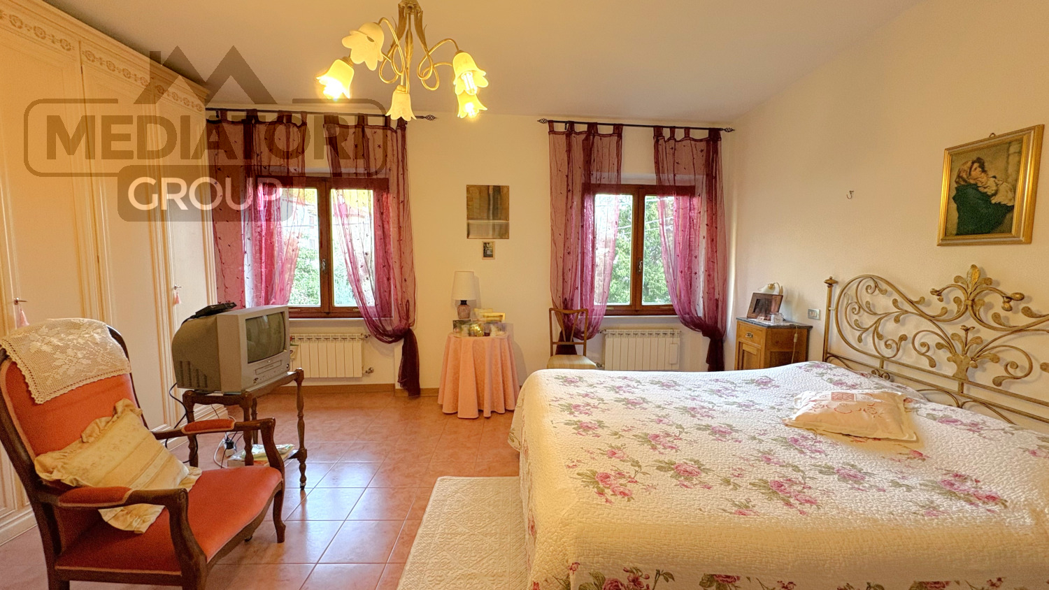 Il secondo piano ospita la zona notte, composta da tre camere da letto e un ulteriore bagno. La camera matrimoniale, particolarmente spaziosa e luminosa, è ideale per chi ama ambienti ampi e ben arredati.