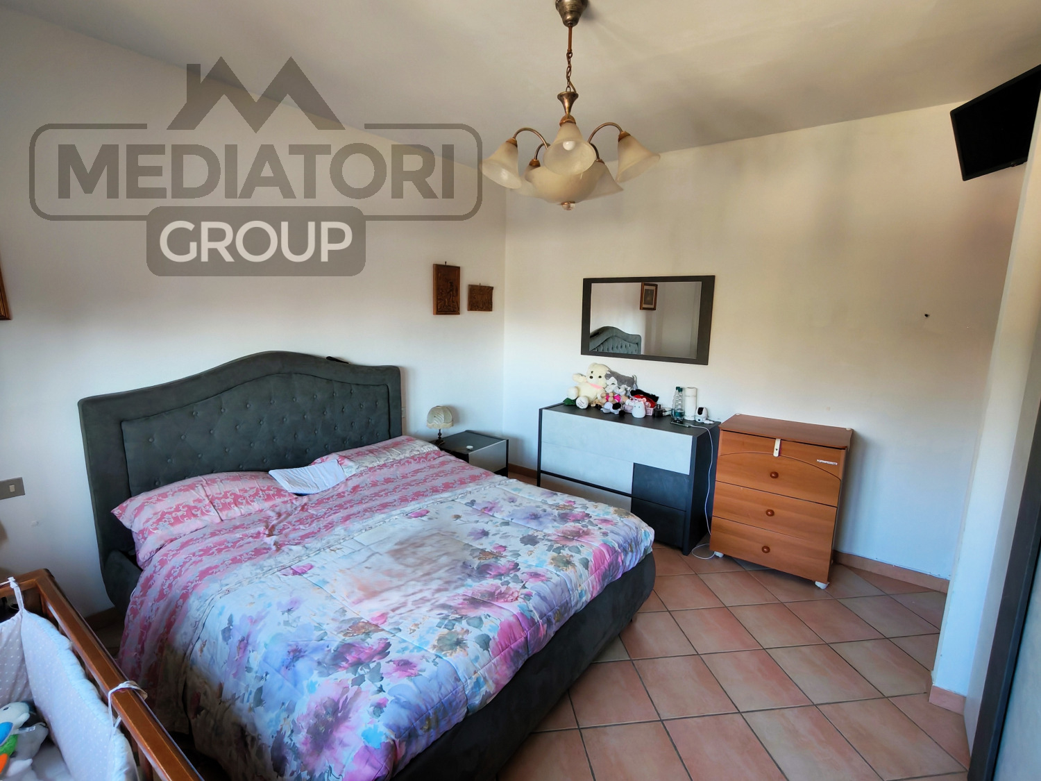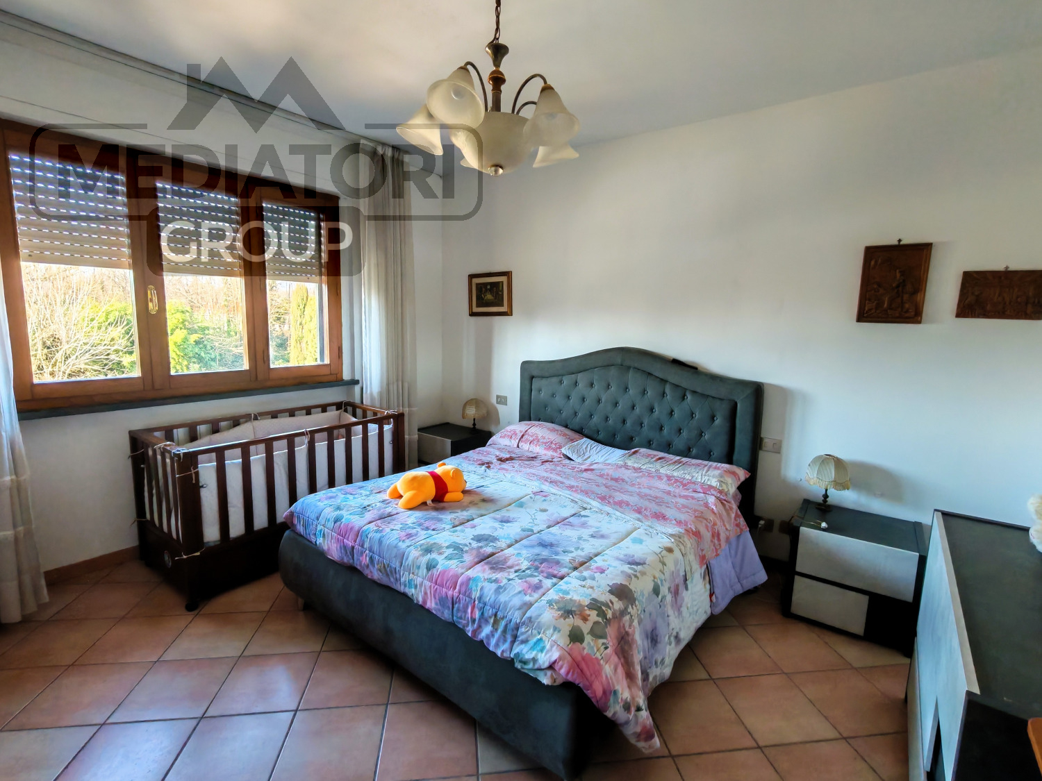 La zona notte ospita tre camere da letto, di cui una matrimoniale e due camere doppie di cui una con terrazzo, ben distribuite e luminose. Completa il piano un bagno finestrato con vasca.
