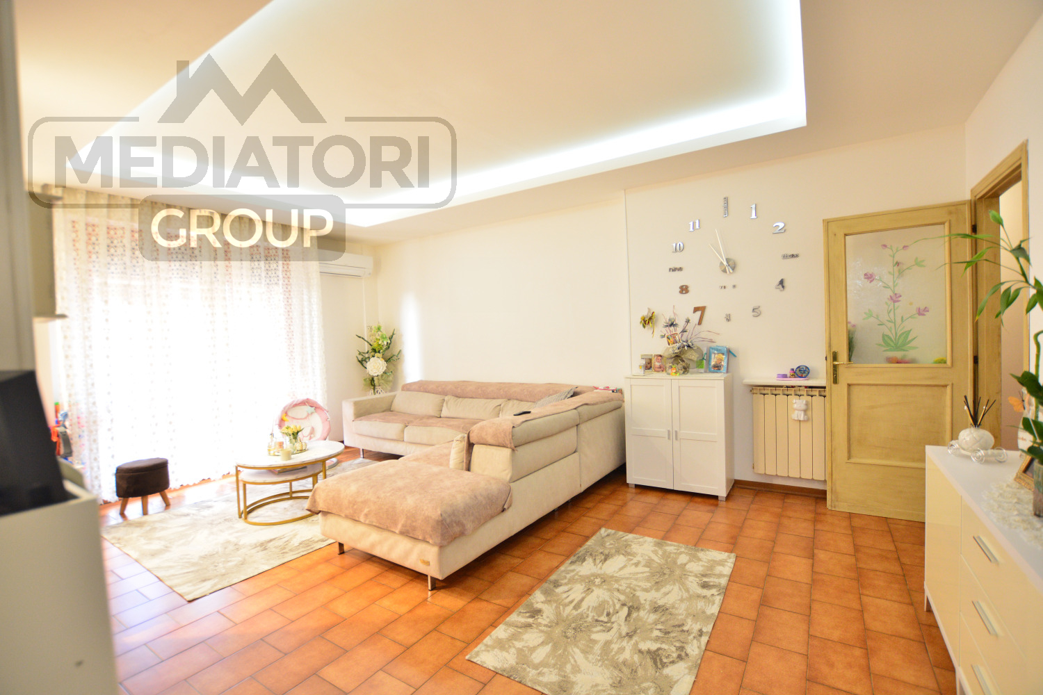 La sala è molto ampia e luminosa grazie alla presenza di una porta finestra che ci fa accedere sul secondo terrazzo esclusivo.