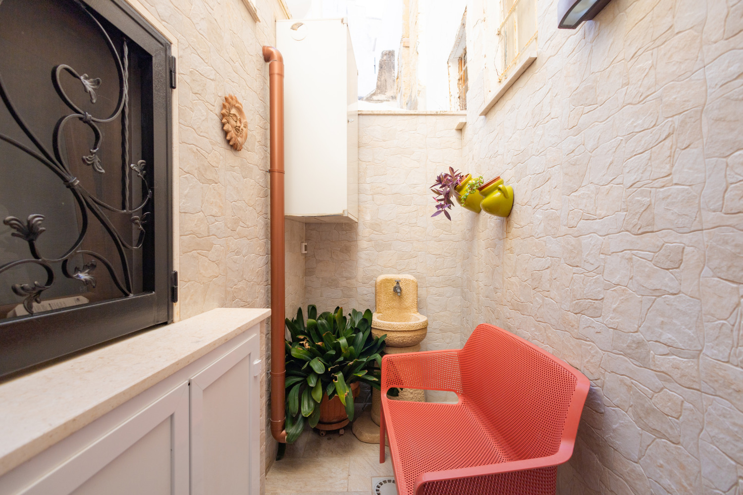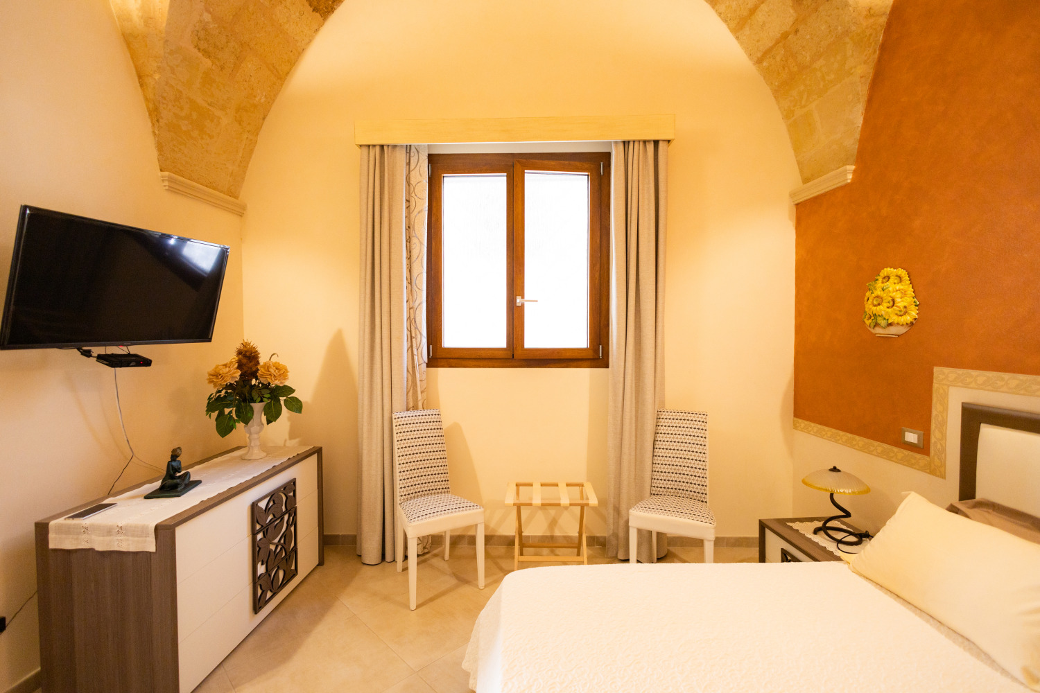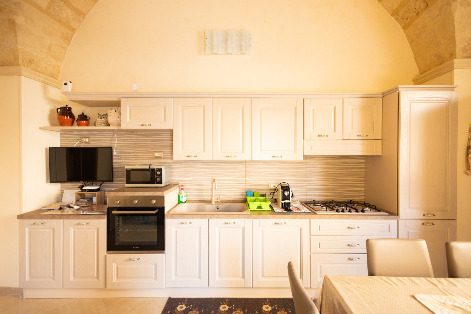Dotata di tutti i requisiti richiesti dalle attuali normative, questa struttura di prestigio offre due appartamenti indipendenti, posti al piano terra e dotati di ogni comfort: il più grande, denominato "Tommy" ha una spaziosa camera matrimoniale, un divano letto, una cucina attrezzata ed un bagno con doccia. L'appartamento più piccolo, ma non per questo meno interessante, denominato "Kelly", ha una camera matrimoniale, un bagno con doccia, una cucina attrezzata ed un piccolo giardino La vera chicca dell'appartamento Kelly sta nella possibilità di creare, nel piano interrato, una lussuosa ed esclusiva spa privata, rendendo questa dimora un vero gioiello nel panorama immobiliare leccese. Arredi di design, volte a stella e finiture di pregio, sono il punto di forza di questa struttura che viene venduta con tutte le seguenti dotazioni di seguito elencate: