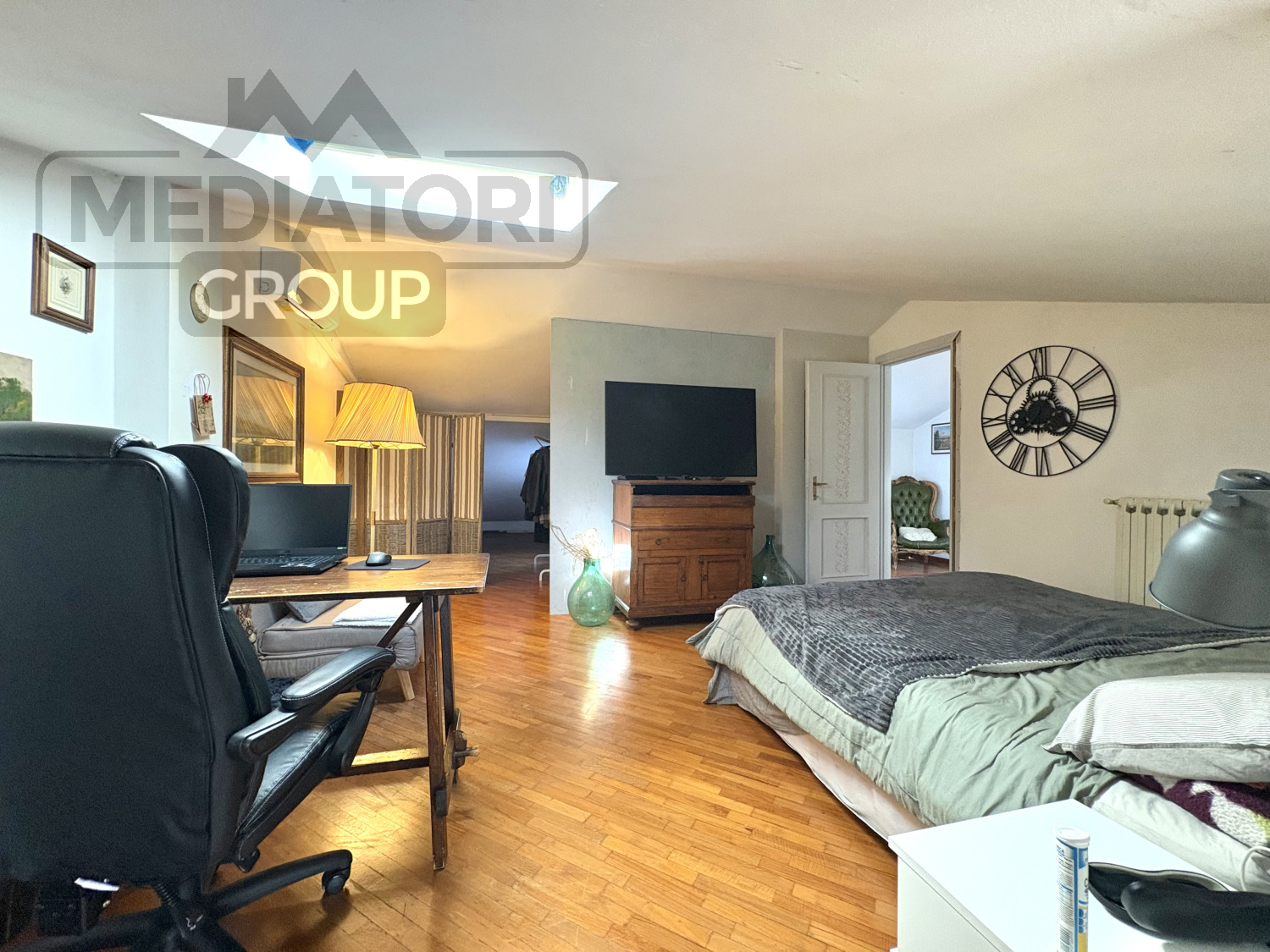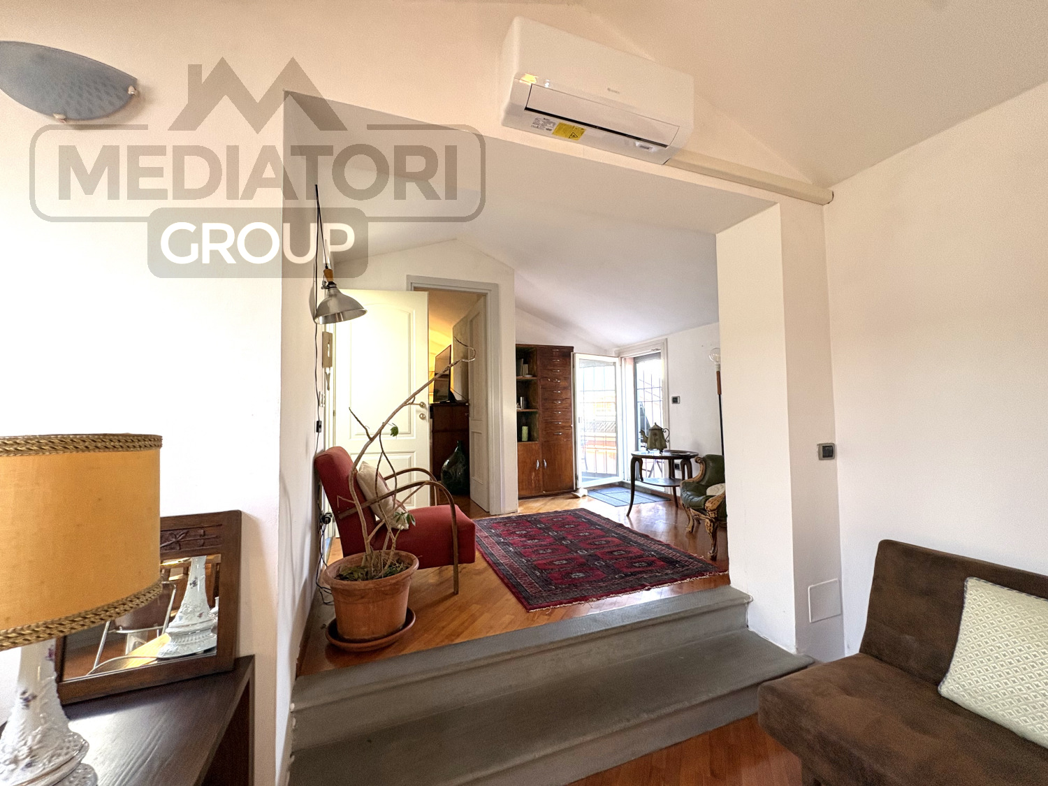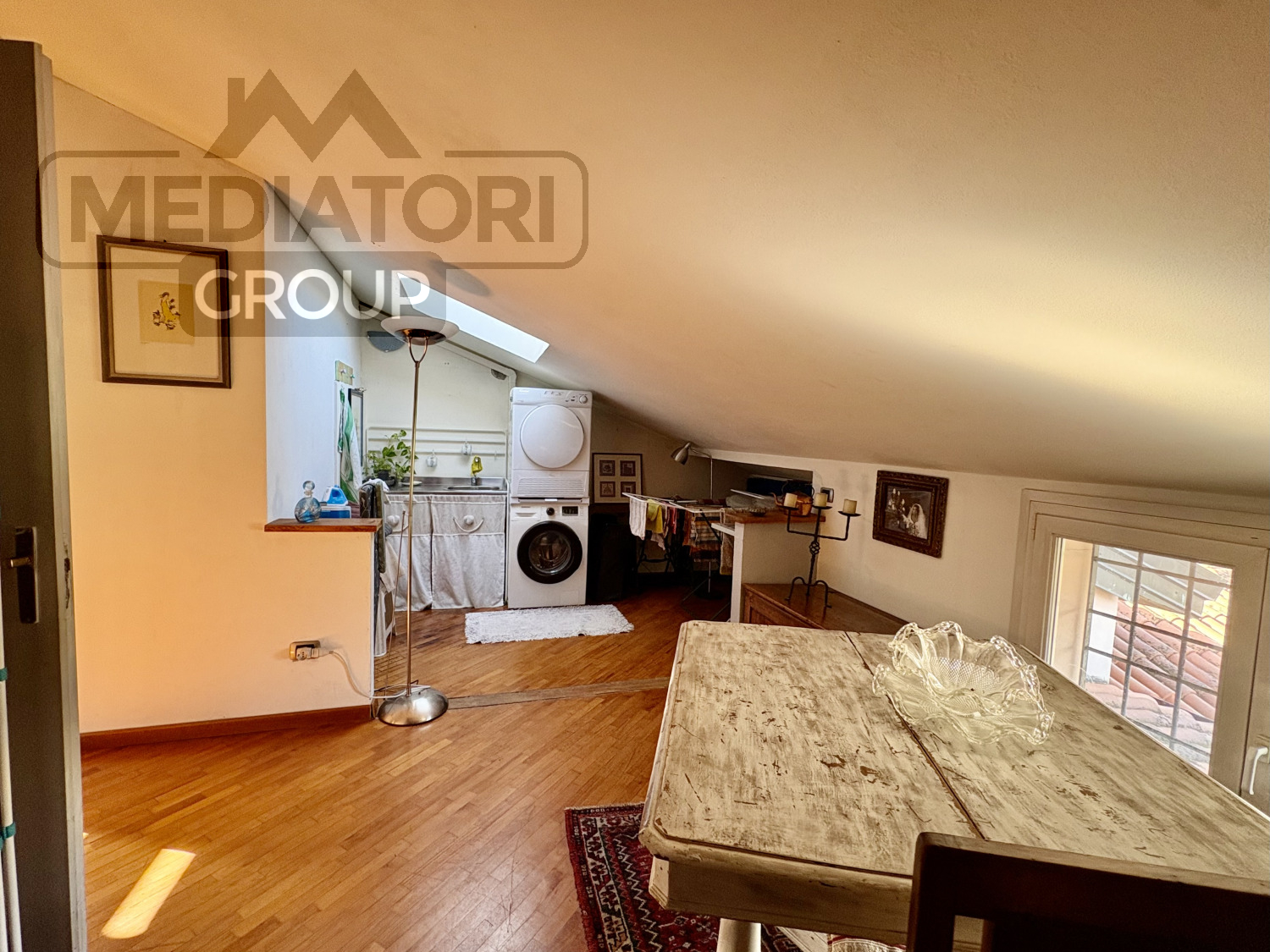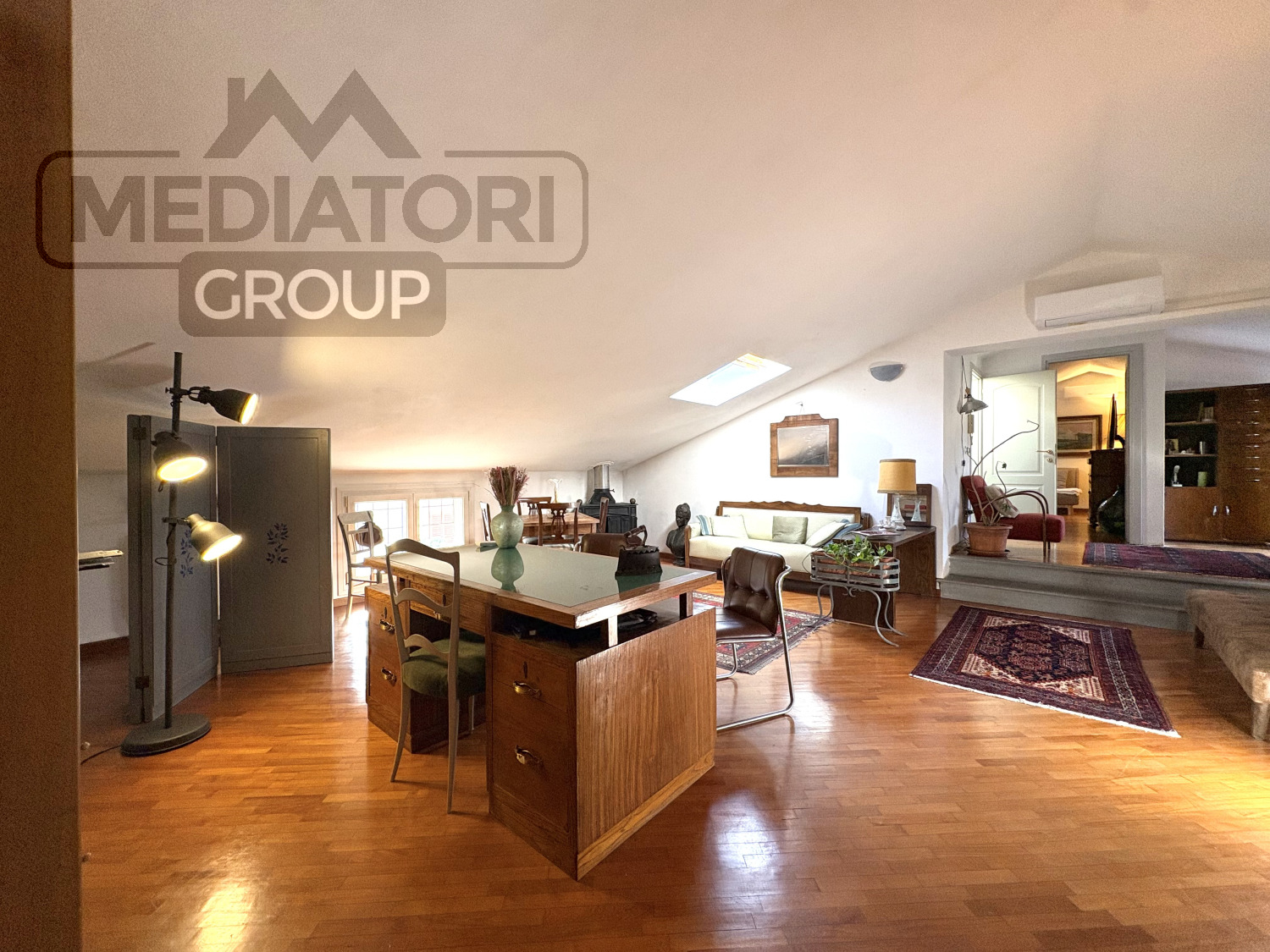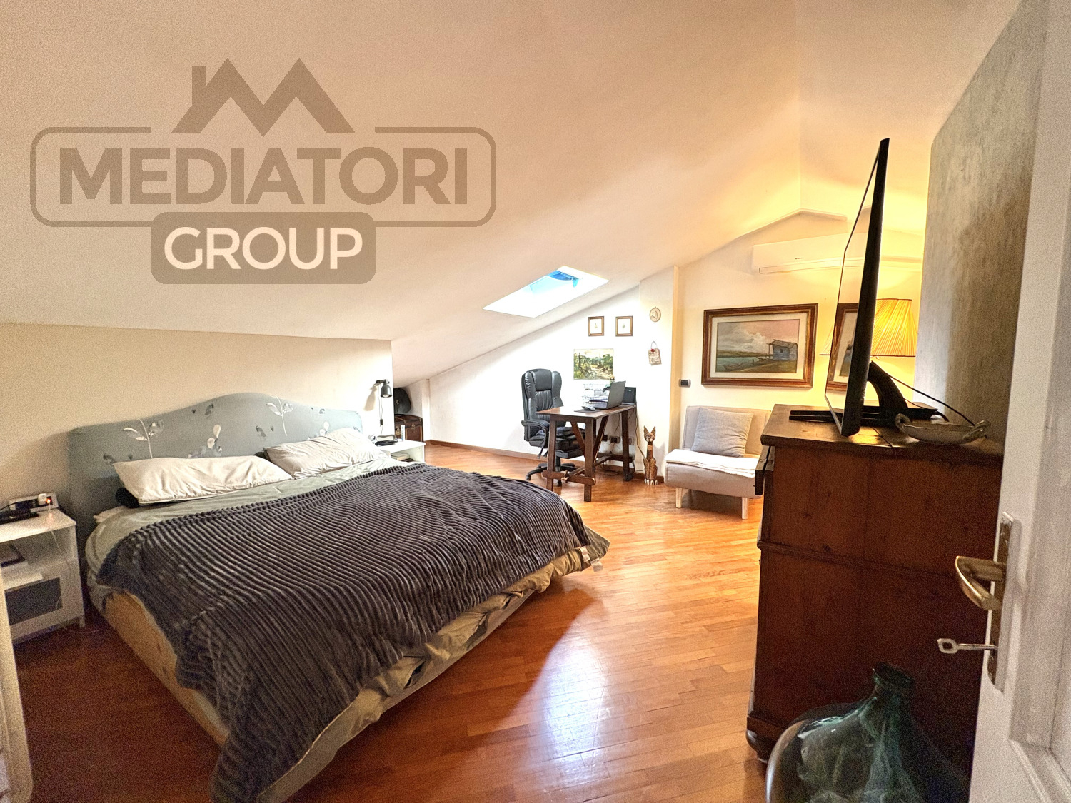 Il secondo piano mansardato, di circa 80 m², offre un bagno di servizio e spazi accessori, oltre a una comoda climatizzazione con due split inverter.