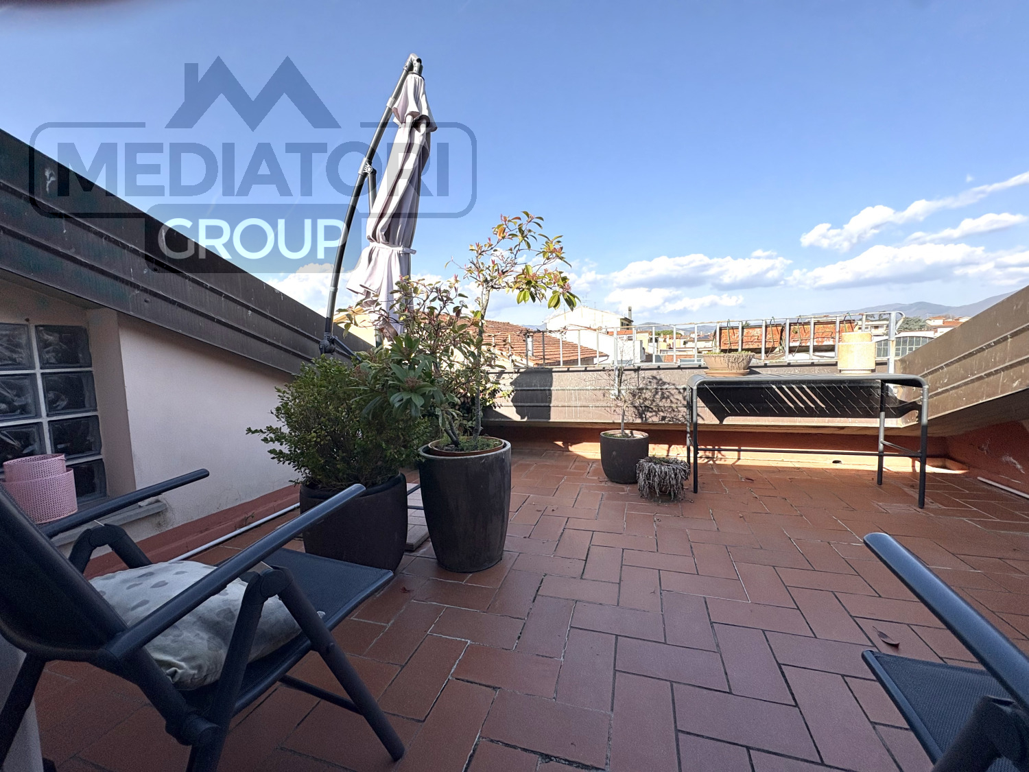 All'esterno, puoi godere di un ampio terrazzo principale di 70-80 m² e di un secondo terrazzo di 10 m².